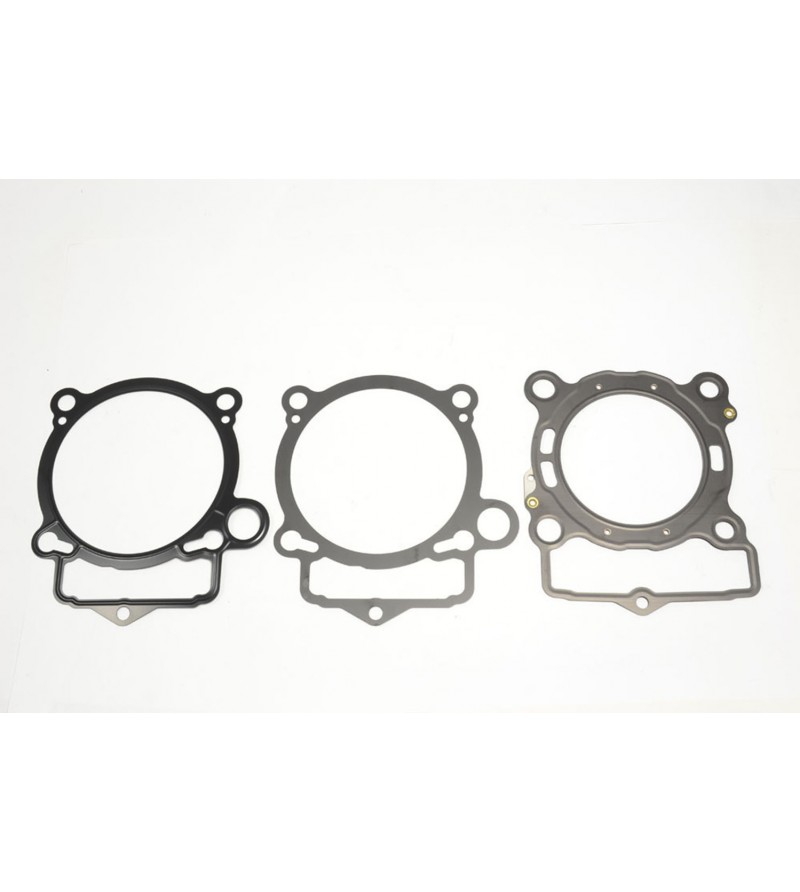 Athena Race Gasket Kit Οι φλάντζες ATHENA Race Kit κατασκευάζονται από υψηλής ποιότητας υλικά στην Ιταλία. Ο σχεδιασμός και εξέλιξη είναι βασισμένα στην συνεργασία με τους μηχανικούς των μεγαλύτερων ομάδων του Παγκοσμίου και του Ευρωπαϊκού Πρωταθλήματος Motocross !Το κιτ περιλαμβάνει μια φλάντζα κεφαλής MLSS (Multi Layer Stainless Steel) και δυο φλάντζες βάσεων διαφορετικού πάχους. Η μια βάσεως εχει το std πάχος και η δεύτερη είναι πιο λεπτή κατά 0.1mm επιτρέποντας την αύξηση της συμπίεσης και την μείωση του squish!