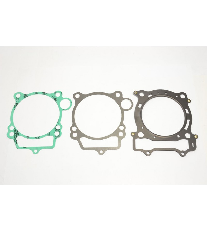 Athena Race Gasket Kit Οι φλάντζες ATHENA Race Kit κατασκευάζονται από υψηλής ποιότητας υλικά στην Ιταλία. Ο σχεδιασμός και εξέλιξη είναι βασισμένα στην συνεργασία με τους μηχανικούς των μεγαλύτερων ομάδων του Παγκοσμίου και του Ευρωπαϊκού Πρωταθλήματος Motocross !Το κιτ περιλαμβάνει μια φλάντζα κεφαλής MLSS (Multi Layer Stainless Steel) και δυο φλάντζες βάσεων διαφορετικού πάχους. Η μια βάσεως εχει το std πάχος και η δεύτερη είναι πιο λεπτή κατά 0.1mm επιτρέποντας την αύξηση της συμπίεσης και την μείωση του squish!