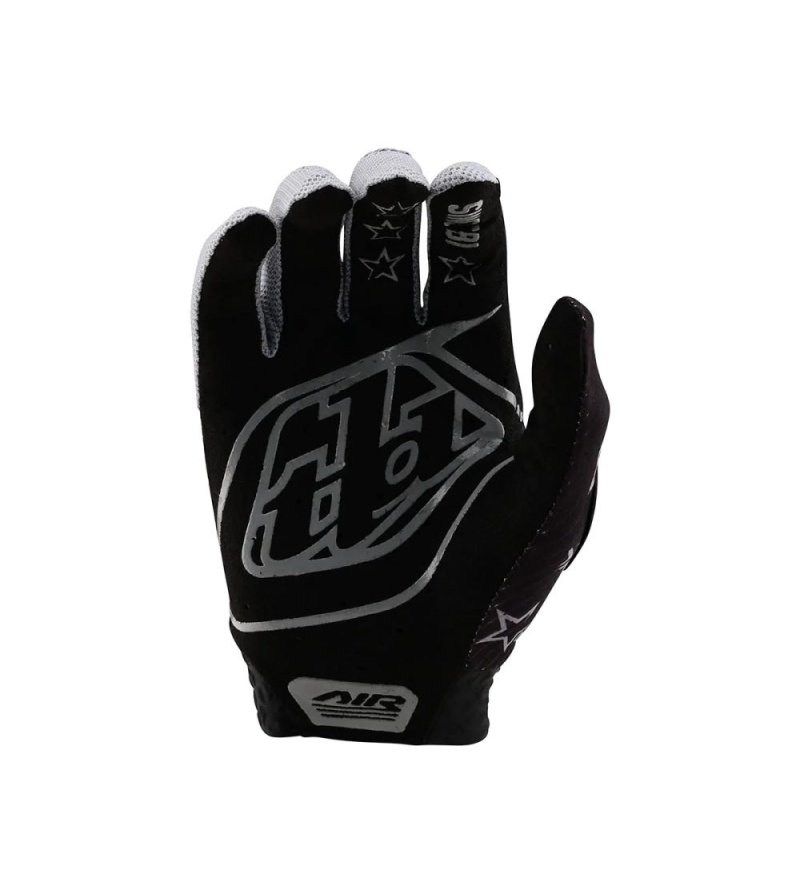 Γάντια Troy Lee Designs Air Ο σχεδιασμός και εξέλιξη της σειράς AIR είναι βασισμένα στην συνεργασία με τους οδηγούς των μεγαλύτερων ομάδων του Παγκοσμίου Πρωταθλήματος Motocross ! Είναι κατασκευασμένα από διάτρητο συνθετικό δέρμα στην παλάμη και όλο το υπόλοιπο από 2-Way Stretch Spandex (ελαστικό) υλικό για τέλεια εφαρμογή. Επίσης έχουν ελαφριά προστασία στο δάχτυλο και την ραχιαία επιφάνια από καουτσούκ TPR. Χαρακτηριστικά: Ελαστικό υλικό δυο κατευθύνσεων Spandex Εκτύπωση σιλικόνης στα δυο δάχτυλα που έχουν επαφή με την μανέτα για καλύτερο grip. Διάτρητο υλικό στην παλάμη για μέγιστο εξαερισμό. Κλείσιμο με υψηλής ποιότητας Velcro στον καρπό. Ελαφριά προστασία στα δυο δάχτυλα από καουτσούκ TPR (Thermo Plastic Rubber).