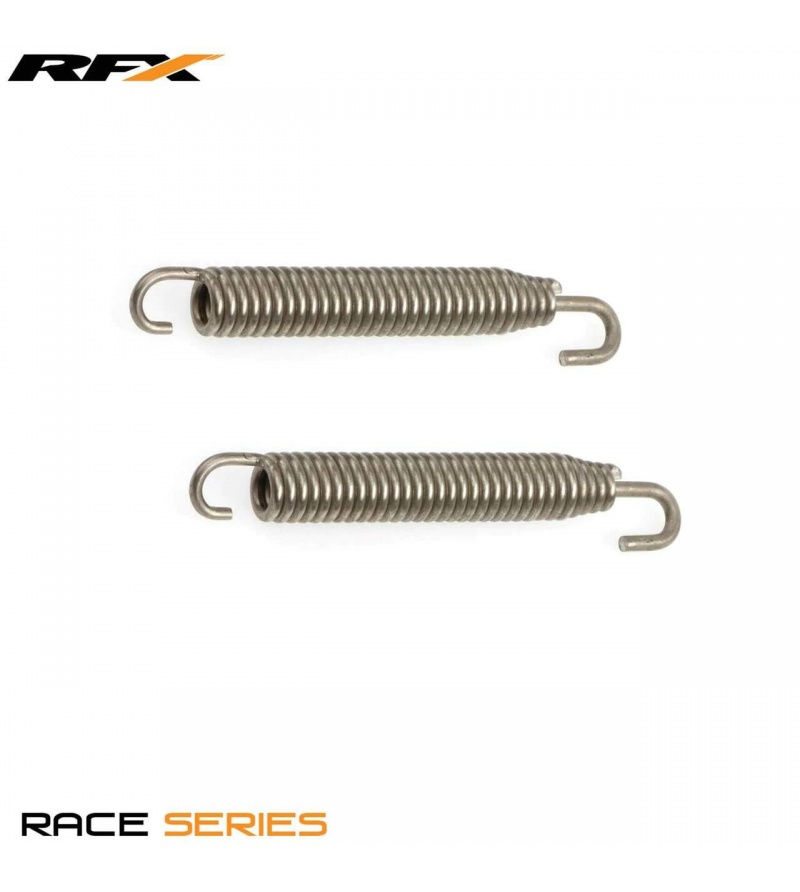 Τα ελατήρια εξάτμισης RFX Race Series Swivel είναι κατασκευασμένα από ανοξείδωτο ατσάλι για να αντέχουν στη διάβρωση. Περιλαμβάνουν ένα περιστρεφόμενο άκρο για καλύτερη της εφαρμογή σε όλους τους τύπους εξατμίσεων. Διατίθεται σε 57mm, 75mm, 83mm, και 90mm
