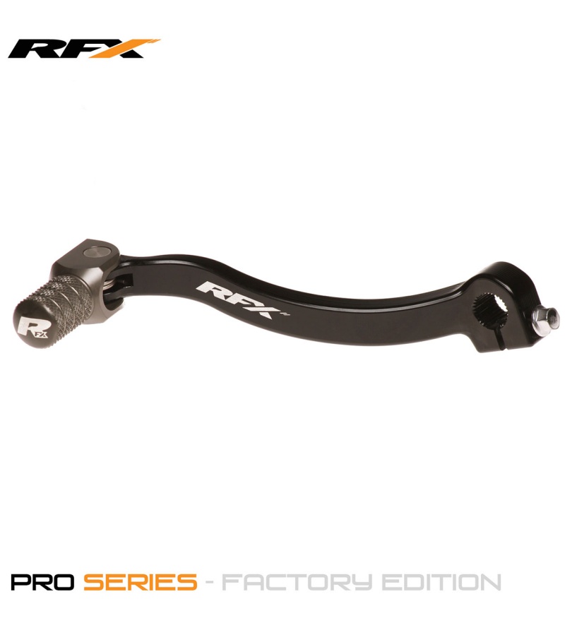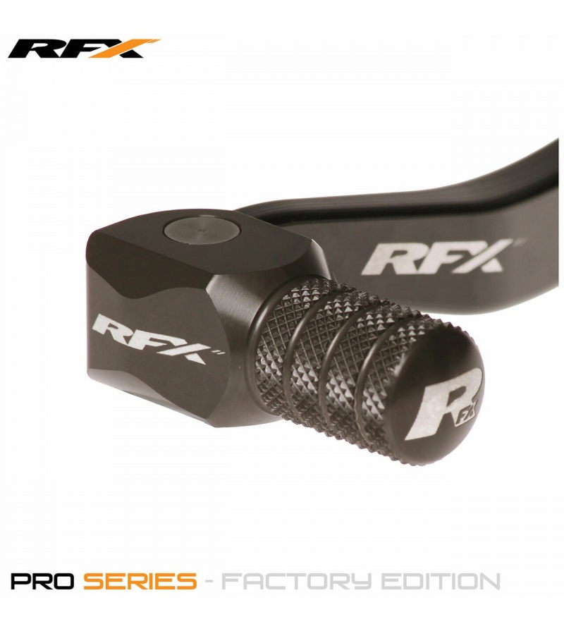 Οι Λεβιέδες ταχυτήτων RFX Factory Edition (Hard Anodised) είναι από τους καλύτερους και πιο ανθεκτικούς τις παγκόσμιας αγοράς. Ο άξονας και το σημείο που έρχεται σε επαφή με την μπότα (Tip) έχει Hard Anodised επίστρωση, και έχει επεξεργαστεί από CNC, για αυξημένη αντοχή (δεν είναι χυτό όπως οι περισσότερη λεβιέδες). Το Tip έχει χαμηλό profile, είναι flex (αναδιπλούμενο) για να μην σπάει σε περίπτωση πτώσεις, και έχει σχεδιαστεί με ραβδώσεις έτσι ώστε να μην συγκρατεί λάσπη και βρωμιές. Επίσης το ελατήριο και το Pivot είναι από ανοξείδωτο ατσάλι για να μην διαβρώνεται