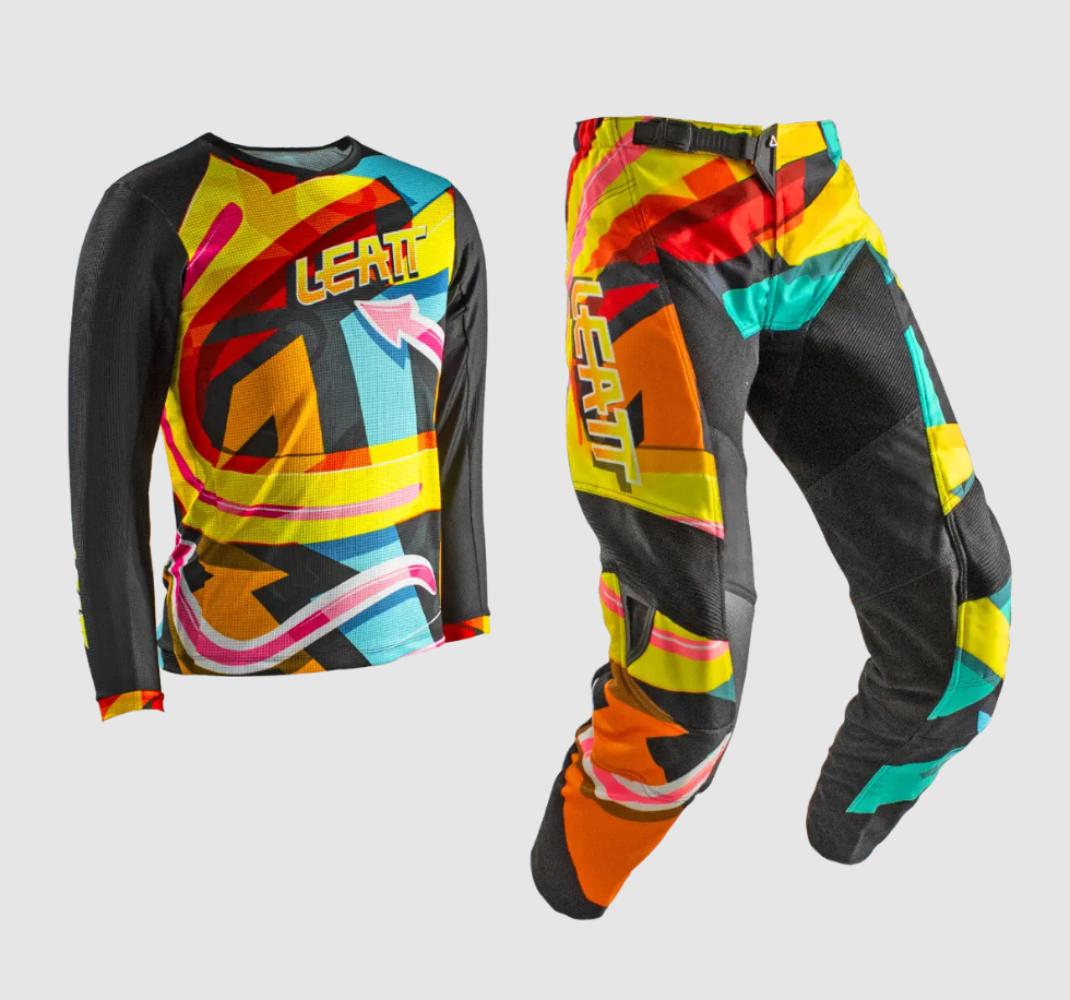 Το Leatt 3.5 Ride Kit Junior στην έκδοση Carnival είναι ο πιο “ζωντανός” συνδυασμός απόδοσης και στυλ για τους μικρούς αναβάτες. Το σετ περιλαμβάνει μπλούζα και παντελόνι, σχεδιασμένα με την κορυφαία ποιότητα της Leatt, προσφέροντας την απαραίτητη ανθεκτικότητα και ελευθερία κινήσεων που χρειάζεται ένα παιδί στην πίστα ή στο μονοπάτι.