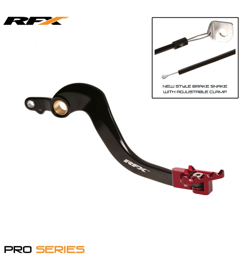 Σχεδιασμένα σύμφωνα με τις υψηλότερες απαιτήσεις τα πετάλ φρένων της σειράς Pro Series κατασκευάζονται από αλουμίνιο 7075-T6 και διαθέτουν σφυρήλατο κυρίως σώμα OEM τύπου και έχει λείο φινίρισμα για να βοηθά στη μείωση της φθοράς του. Η άκρη είναι περιστρεφόμενη με ελατήριο, ώστε να μειώσει τη ζημιά σε περίπτωση πρόσκρουση. Το άκρο διαθέτει ατσάλινα «δόντια» που βοηθούν στο κράτημα σε λασπώδεις συνθήκες. Ανoδιωμένα χρώματα και χαραγμένο το RFX λογότυπο με laser. Στην συσκευασία περιλαμβάνεται kit συρματασφάλισης.
