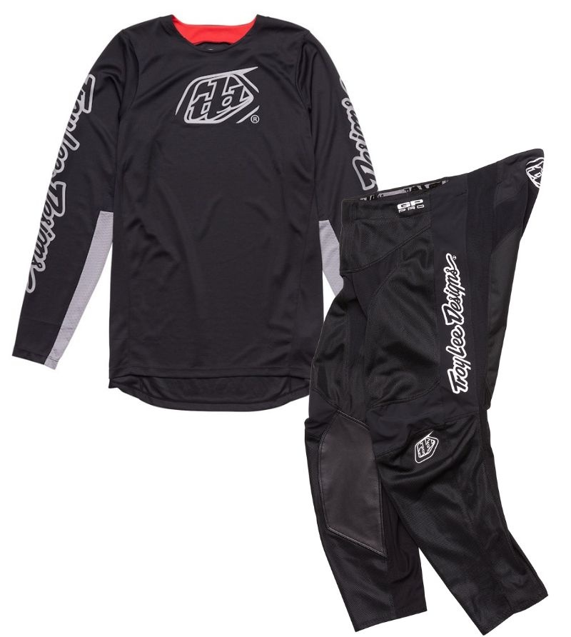 Troy Lee Designs Gp Pro Στολή Χαρακτηριστικά Μπλούζας: Ride Θερμοκολλημένος, αναδιπλούμενος εμπρός & πίσω “αγωνιστικός” γιακάς με βελτιωμένη εφαρμογή και άνεση Υφασμάτινη κατασκευή σε όλο το σώμα για βελτιωμένο αερισμό Ημι-αθλητική εφαρμογή-όχι υπερβολικά χαλαρή ή φαρδιά, αλλά όχι σφιχτή Η ουρά με στάμπα από σιλικόνη κρατά τη φανέλα στη θέση της Χαρακτηριστικά Παντελονιού: Fide Fit Εσωτερική τσέπη με φερμουάρ 600D Poly Canvas 600D Ενισχυμένα panel καθίσματος Spandex 2-way Stretch και 4-Way Polyester Stretch Ματ και ελαφρύ λόγότυπο πάχους 3mm Θερμικό και αντιτριβικό δερμάτινο πάνελ από δέρμα αγελάδας και εσωτερικά στο γόνατο
