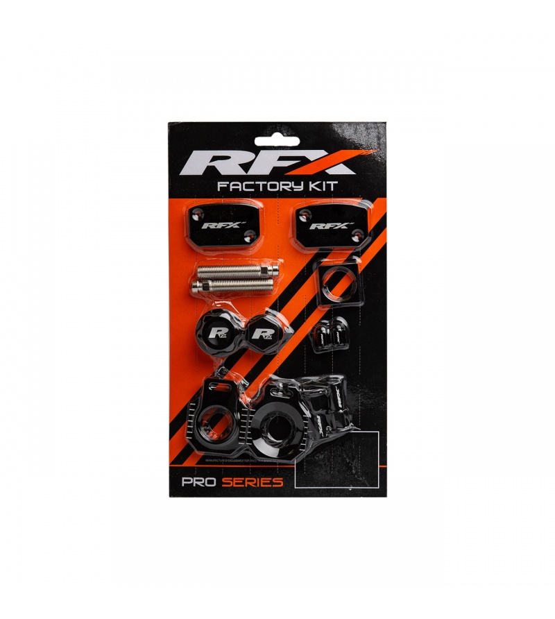 Τα Factory Kit της RFX δίνουν στο μηχανάκι σας την πλήρη εργοστασιακή εμφάνιση, σε ένα πακέτο. Κατασκευασμένα από αλουμίνιο αεροπορικού τύπου, υψηλής ποιότητας, αποτελούν μια τέλεια αντικατάσταση του εργοστασιακού στυλ σε Factory!