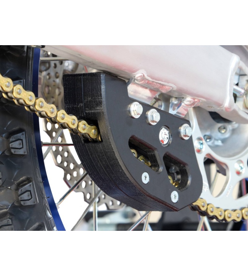 Οι οδηγοί αλυσίδας AXP είναι κατασκευασμένοι για χρήση Enduro και Hard Enduro και προστατεύουν το μπροστινό fixation tab, μειώνοντας τον κίνδυνο σπασίματος όσο κανένα στην αγορά. Έχουν υποστεί επεξεργασία στη μάζα του πλαστικού UHMW, για να προσφέρουν καλύτερη αντοχή και προστασία στην αλυσίδα και το γρανάζι σας. Οι οδηγοί αλυσίδας AXP χρησιμοποιούνται από την Sherco Official Team στους αγώνες Rally και από οδηγούς παγκόσμιου βεληνεκούς όπως ο Wade Young και Mario Roman σε αγώνες Extreme.