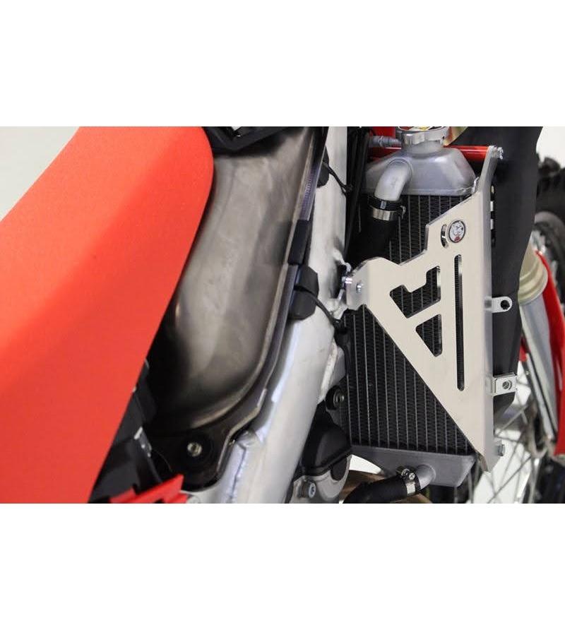 Τα αλουμινένια προστατευτικά ψυγείου AXP, βιδώνουν σε τρία σημεία, δύο μπροστά και ένα πίσω. Αυτός ο σχεδιασμός προστατεύει πλευρικά τα ψυγεία σας σε περίπτωση πτώσης με μικρή ταχύτητα, αλλά επίσης εμποδίζει το ψυγείο να μπει προς τα μέσα κατά τη διάρκεια κρούσης με υψηλή ταχύτητα. Η προστασία παρέχεται και στις δύο πλευρές με όλες τις απαραίτητες βίδες για τη συναρμολόγηση.