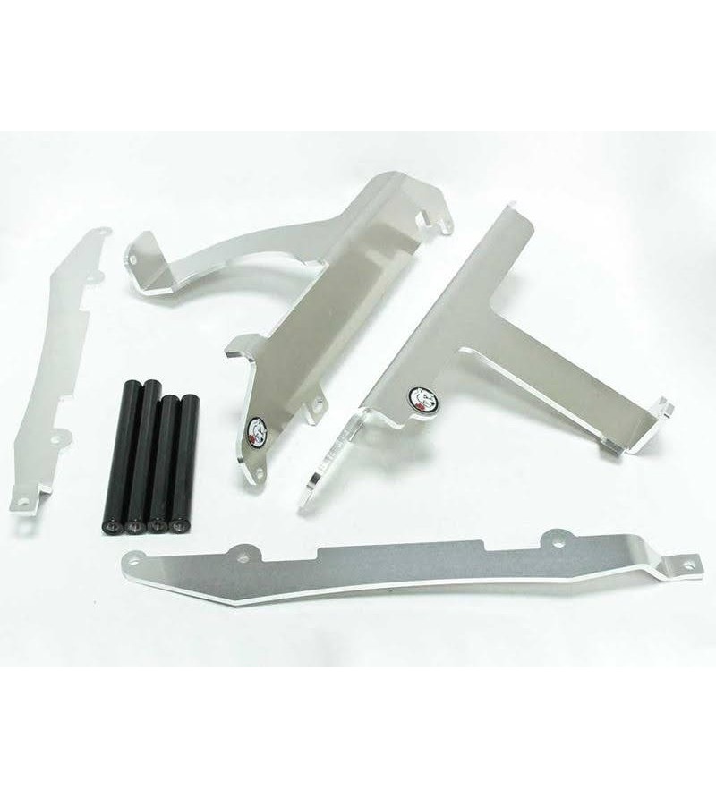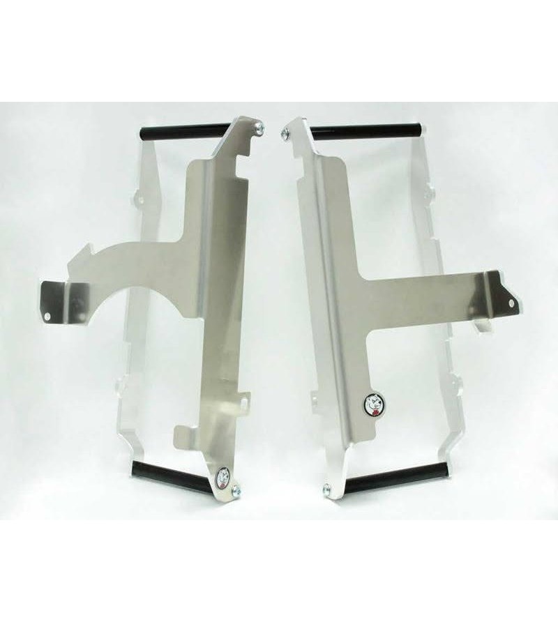 Τα αλουμινένια προστατευτικά ψυγείου AXP, βιδώνουν σε τρία σημεία, δύο μπροστά και ένα πίσω. Αυτός ο σχεδιασμός προστατεύει πλευρικά τα ψυγεία σας σε περίπτωση πτώσης με μικρή ταχύτητα, αλλά επίσης εμποδίζει το ψυγείο να μπει προς τα μέσα κατά τη διάρκεια κρούσης με υψηλή ταχύτητα. Η προστασία παρέχεται και στις δύο πλευρές με όλες τις απαραίτητες βίδες για τη συναρμολόγηση.