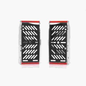 AXP προστατευτικά ψυγείου Xtrem! Το προστατευτικό σχηματίζει ένα πραγματικό κλουβί γύρω από τα ψυγεία και είναι συμβατό με το βεντιλατέρ . Το μπροστινό πλέγμα πάχους 6.0mm από HDPE, ενισχύει την αντίσταση σε περίπτωση πτώσης και μπορεί να αφαιρεθεί σε 15 δευτερόλεπτα από την πλαϊνή πλευρά. ΣΗΜΕΙΩΣΗ: Υπάρχει περίπτωση το προστατευτικό λάσπης να έρχεται σε επαφή με το προστατευτικό ψυγείων. Αυτό μπορεί να λυθεί, προσθέτοντας ροδέλες στο προστατευτικό λάσπης ή λυγίζοντας το.
