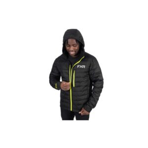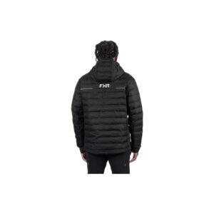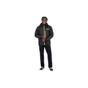 FXR Rig Quilted – Black Specifications: Polyester outer and inner fabric with weld quilting Synthetic down fill Polyester/spandex fleece side and sleeve inserts Zippered hand and chest pockets Folds up into zippered pocket bag Zip-off removable hood Lycra binding at hood Reflective screen printed logos and inserts