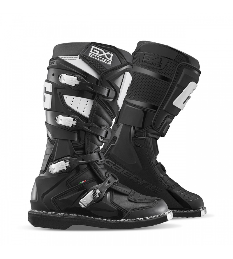Gaerne MX GX 1 Το μοντέλο GX-1 της Gaerne είναι η πιο πρόσφατη καινοτόμος μπότα, entry level. Διαθέσιμη με ειδική σόλα που έχει αναπτυχθεί για Enduro. Η GX1 ενσωματώνει τεχνολογία και στυλ , παρέχοντας άνεση και ασφάλεια. Κατασκευασμένη στην Ιταλία από υψηλής ποιότητας υλικά. Χαρακτηριστικά: Προσφέρει προστασία αποφεύγοντας την υπερέκταση εμπρός και πίσω ενώ παρέχει ελαστικότητα. Δέρμα σουέτ για αυξημένο κράτημα και αντοχή στη θερμότητα. Το σύστημα κλεισίματος αποτελείται από 4 αντικαταστάσιμες πόρπες από ελαφρύ υλικό για εύκολο και γρήγορο κλείσιμο. Αφαιρώντας τις δύο πρώτες πόρπες στο επάνω μέρος, μπορείτε να κάνετε το άνοιγμα πιο φαρδύ για να χωρέσει ένα μεγαλύτερο προστατευτικό. Αποκλειστική σύνθετη σόλα από καουτσούκ υψηλής πρόσφυσης για ανθεκτικότητα και τέλεια αίσθηση κατά την οδήγηση.