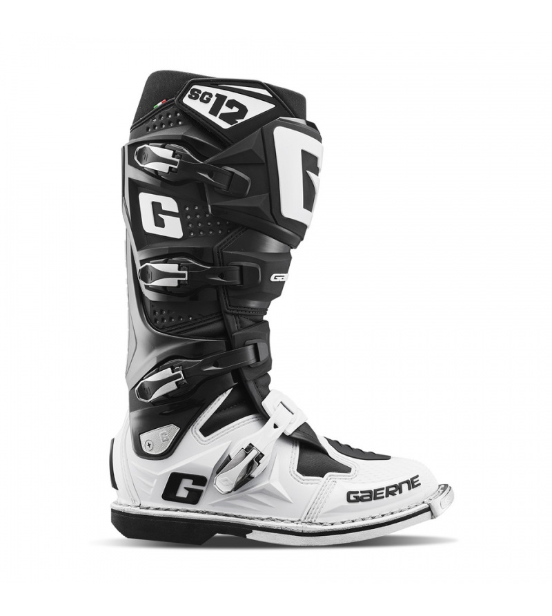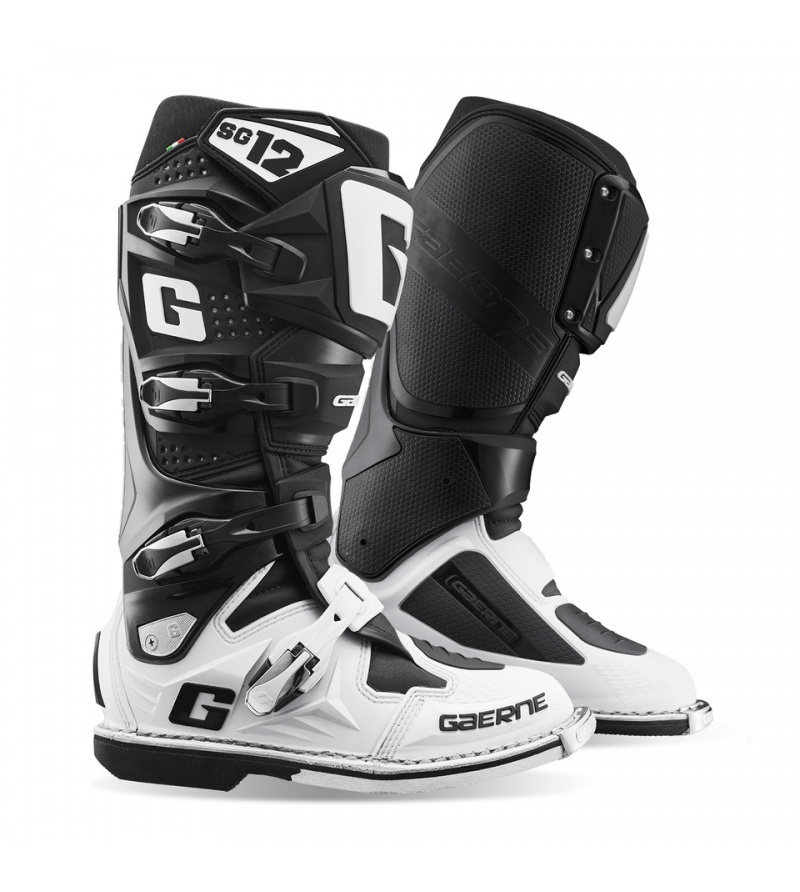 Gaerne MX SG 12 Η Gaerne SG-12 είναι το πιο δημοφιλές μοντέλο και ένα από τα καλύτερα για Motocross και Enduro στον κόσμο! Το μεγαλύτερο προτέρημα της SG-12 είναι η ασφάλεια που προσφέρει στον αναβατή, που δε μπορεί να συγκριθεί με καμία άλλη! Δείτε παρακάτω όλα τα πλεονεκτήματα της SG-12 αναλυτικά: Χαρακτηριστικά: Σύστημα Dual Stage Pivot: Ένα άκαμπτο εξάρτημα που προσφέρει ισχυρή πλευρική στήριξη ενώ μια πλάκα ολίσθησης διατηρεί το επάνω μέρος σε σταθερή και όρθια θέση. Το δεύτερο εξάρτημα επιτρέπει στο πόδι του αναβάτη να κινείται φυσικά. Ωστόσο, θα απορροφήσει τους κραδασμούς σε περίπτωση ενός άλματος ή σε περίπτωση ανεπιθύμητης συμπίεσης. Grip Guard: Στην εσωτερική πλευρά της μπότας βρίσκεται το ολοκαίνουργιο ελαστικό “Grip Guard”. Προσφέρει εξαιρετική πρόσφυση, καθώς και μία ανθεκτική στη θερμότητα επένδυση. Μπροστινή πλάκα/Προστατευτικό κνήμης: Αυτή η νέα θερμοπλαστική πλάκα κνήμης έχει ανατομικό σχήμα για τέλεια εφαρμογή. Αφαιρώντας τρεις βίδες ένας αναβάτης μπορεί επίσης να κάνει το άνοιγμα πιο φαρδύ για να χωρέσει ένα μεγαλύτερο προστατευτικό γονάτων. Σύστημα πόρπης: Η SG-12 χρησιμοποιεί τέσσερις ελαφριές πόρπες που συνδέονται με ρυθμιζόμενο ιμάντα. Γκέτα: Κατασκευασμένη από ένα νέο ελβετικό διαπνέον ύφασμα που ονομάζεται Acronos, η γκέτα είναι εξαιρετικά ελαστική αλλά έχει το τέλειο σχήμα για να κρατά έξω την άμμο και τα υπολείμματα. Εσωτερική επένδυση: Στο εσωτερικό θα βρείτε τον περίφημο “Gaerne Memory Cell Foam”, γνωστό για την πιο άνετη αίσθηση και εφαρμογή. Toe-Box: Αυτή η νέα σχεδίαση διαθέτει πιο λεπτό σχήμα στην περιοχή των δακτύλων για βελτιωμένη αίσθηση του μοχλού αλλαγής ταχυτήτων. Όλη η περιοχή τυλίγεται από ένα νέο πλαστικό υλικό που είναι ελαφρύτερο και παρέχει περισσότερη άνεση. Toe cup: Το κάλυμμα των ποδιών έχει επανασχεδιαστεί και ενισχυθεί για να προσφέρει μια νέα «σκληρότερη» εμφάνιση. Σόλα: Κατασκευασμένη από Gaerne “Dual Composite”, αντικραδασμικό καουτσούκ που έχει κάνει τις σόλες Gaerne διάσημες σε όλο τον κόσμο. Πάτος: Μέσα στη μπότα θα βρείτε ένα ολοκαίνουργιο πέλμα το οποίο έχει διαμορφωθεί για να στηρίζει σωστά το πόδι. Στο πίσω μέρος του πέλματος έχει χρησιμοποιηθεί νέο υλικό απορρόφησης κραδασμών. Στο μπροστινό μέρος η κατασκευή του πάτου επιτρέπει στο πόδι να αερίζεται.