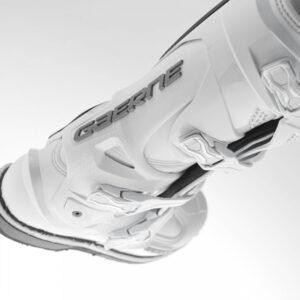 Gaerne MX SG 22 Η νέα Gaerne SG22 είναι εξέλιξη του best seller μοντέλου SG12. Κάθε στοιχείο και λεπτομέρεια της νέας SG22 έχει βελτιωθεί, συμπεριλαμβανομένου ενός νέου, τρισδιάστατου Main Body Toe Box που υιοθετεί μια τρισδιάστατη κατασκευή. Αυτή η νέα σχεδίαση φέρνει μείωση του ύψους μεταξύ της σόλας και της κορυφή του κουντουπιέ, αυξάνοντας την ταχύτητα και την ευκολία αλλαγής ταχυτήτων. Βεβαίως η SG22 έχει τέλειο ζύγισμα και το συνολικό της βάρος δεν είναι καθόλου αισθητό. Επίσης είναι πολύ πιο άνετες από τις SG12 και αυτό θα το καταλάβετε από την πρώτη βόλτα, διατηρώντας το μέγιστο βαθμό προστασίας του ποδιού σας !! Χαρακτηριστικά: Η βελτίωση της γεωμετρίας μιμείται την κίνηση του αστραγάλου. Το Dual Stage Pivot System προστατεύει τον αστράγαλο και περιορίζει την υπερέκταση, την υπερκάμψη και τις πλάγιες κινήσεις. Μπροστινή πλάκα κνήμης με δύο αεραγωγούς. Έγχυση αφρού μνήμης (Memory Foam). Inner Grip Guard: Αναπτύχθηκε σε συνεργασία με επαγγελματίες αναβάτες για βελτίωση της προστασίας και του συντελεστή τριβής για καλύτερη αίσθηση οδήγησης. Νέα σόλα Goodyear με ένθετα διπλής πυκνότητας για καλύτερο κράτημα, ανθεκτικότητα και αντικραδασμική προστασία. Η φτέρνα Microshock διαθέτει επίσης μια ένωση με διαφορετικές πυκνότητες σχεδιασμένη να παρέχει προστασία από μικροκρούσεις Πόρπη αλουμινίου Superlight Νέο ατσάλινο προστατευτικό μεταξύ της σόλας και του επάνω μέρους με μειωμένο πάχος σε σύγκριση με τα προηγούμενα μοντέλα, το οποίο διατηρεί την προστατευτική ικανότητα αλλά μειώνει το βάρος