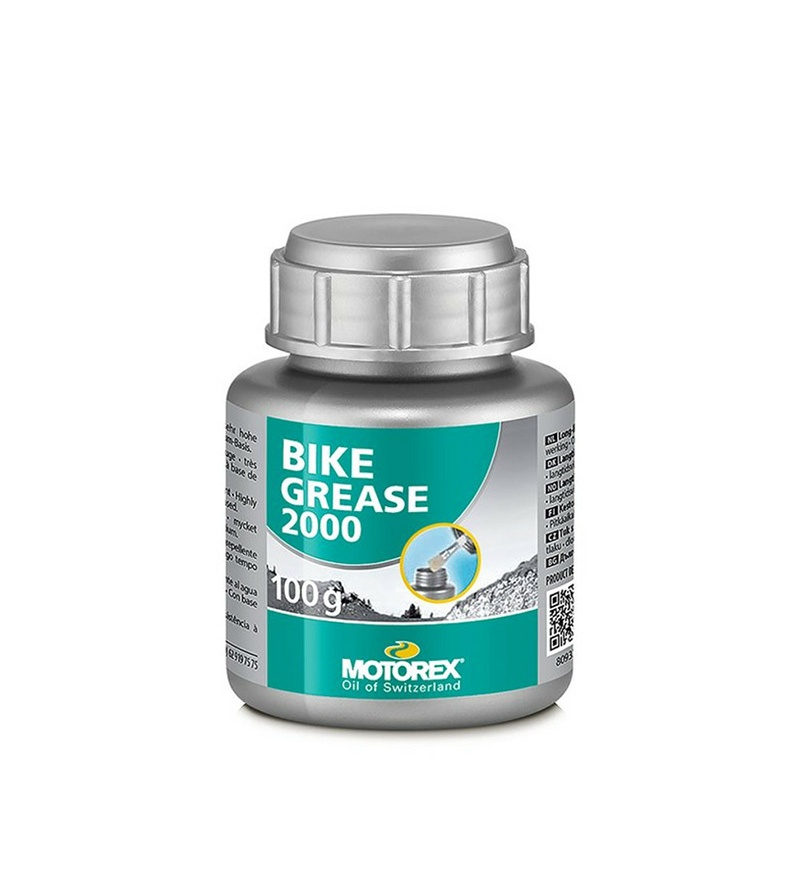 Το Motorex Bike Grease 2000 είναι ένα ειδικό γράσο με εξαιρετική μόνιμη λίπανση και έχει σχεδιαστεί ειδικά για ρουλεμάν. Είναι εξαιρετικά υδατοαπωθητικό και ανθεκτικό στην πίεση και χαρακτηρίζεται από υψηλή σταθερότητα στην οξείδωση και αντοχή στη γήρανση. Το γράσο ποδηλάτων Motorex δεν προσβάλλει τα ελαστομερή ή τις σφραγίδες. Στο ποδήλατο, οι ιδιότητές του το καθιστούν κατάλληλο για ένα ευρύ φάσμα εφαρμογών. Σφραγίζει στύλους καθισμάτων, λιπαίνει πλήμνες, αρθρώσεις και ακουστικά. Το πρακτικό κουτί των 100 γραμμαρίων είναι εξοπλισμένο με πινέλο για να απλώνει το λίπος πιο αποτελεσματικά. Τεχνικές προδιαγραφές: Περιοχή προβλεπόμενης χρήσης : Λίπανση ρουλεμάν, σπειρωμάτων, καλωδίων αλλαγής ταχυτήτων Υλικό: πλήρως συνθετικό γράσο χωρίς ρητίνη Συμβατότητα: μπορεί να χρησιμοποιηθεί σε όλα τα ρουλεμάν Ποσότητα γέμισης: 100 γρ Βάρος σύμφωνα με τον κατασκευαστή: δεν προσδιορίζεται Βάρος: 130g