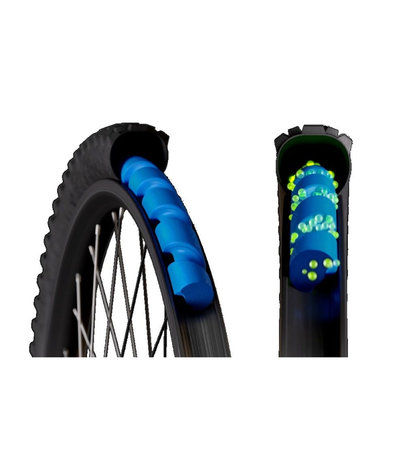 Technomousse Η Technomousse είναι η πρώτη εταιρία που εφάρμοσε την τεχνολογία ANTI-PUNCTURE στα ηλεκτρικά και κανονικά ποδήλατα και τα προϊόντα κατασκευάζονται 100% στην Ιταλία. Η σειρά Blue Vertigo έχει σχεδιαστεί κυρίως για αναβάτες Cross Country και Marathon, αλλά είναι κατάλληλο και για ποδηλάτες Trail!Το επαναστατικό του σχήμα (εκκρεμεί δίπλωμα ευρεσιτεχνίας) διαθέτει μια σπειροειδή επιφάνεια που μειώνει δραστικά το βάρος του, διατηρώντας κατά τη χρήση αναλλοίωτη την απόδοση, διασφαλίζοντας την είσοδο/έξοδο του αέρα και του υγρού στεγανοποιήσεις (ζουμιά) με ομοιόμορφο τρόπο.Τα χαρακτηριστικά του Blue Vertigo, ενισχύουν τα φυσικά χαρακτηριστικά του λάστιχου, προσφέροντας μέγιστη προστασία στα στεφάνια ακόμα και σε περίπτωση βίαιων κρούσεων. Επίσης το εξαιρετικά ελαφρύ υλικό και σχέδιο του mousse, δεν επηρεάζει το συνολικό βάρος του ποδηλάτου και την κινηματική του τροχού. Η αίσθηση μια ομαλής οδήγησης και η πρόσφυση του ελαστικού στο έδαφος υπάρχει ακόμα και σε χαμηλές πιέσεις αέρα. Σε περίπτωση τρυπήματος ή σκισίματος του λάστιχου, το mousse επιτρέπει στον αναβάτη να γυρίσει στον προορισμό του με ασφάλεια!