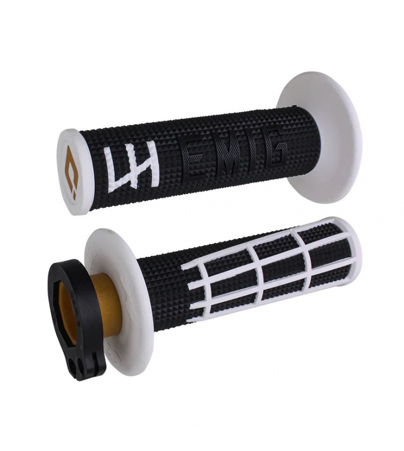 ODI MX Grips Οι χειρολαβές της ODI, EMIG 2.0 V2 Lock-On σχεδιαστήκαν από τον 5 φορές AMA National και Supercross πρωταθλητή Jeff Emig και κατασκευάζονται 100% στην Αμερική ! Το συστημα Lock-On έχει το πλεονέκτημα της γρήγορης και αβίαστης εγκατάστασης. Ο σχεδιασμός εξαλείφει την ανάγκη για κόλλα και σύρμα ασφαλείας, αλλά εξασφαλίζει ανθεκτική απόδοση χωρίς ολίσθηση. Το προφίλ λεπτής διαμέτρου με ραβδωτό σχέδιο βελτιώνει την πρόσφυση και την απόσβεση των κραδασμών, χωρίς να κουράζει τα χεριά του αναβάτη. Οι Jeff Emig 2.0 V2 Signature χειρολαβές έχουν σχεδιαστεί με Pro Soft & Compound επιφάνεια λαβής για επιπλέον άνεση και έλεγχο, ενώ στην άκρη είναι ενισχυμένα από αλουμίνιο για πρόσθετη ανθεκτικότητα στην πτώση και στην αποφύγει σπασίματος τις γκαζιέρας. Τα EMIG είναι η καλύτερη επιλογή για αναβάτες Motocross που θέλουν μαλακή επιφάνεια λαβής, άνεση και μικρότερη κόπωση στα χεριά ! Το κιτ εμπεριέχει τους αντάπτορες γκαζιέρας snap-on (Cam) για τα πιο δημοφιλή 2-Stroke & 4-Stroke μοντέλα ΜΧ. 2-Stroke Cams: C & D 4-Stroke Cams: B, J & K Διαβάστε εδώ τον “Οδηγό Εφαρμογής” και βεβαιωθείτε ότι περιλαμβάνεται ο αντάπτορες γκαζιέρας snap-on (Cam) για το μοντελο σας. ** Ενδέχεται το μοντέλο σας να χρειάζεται αντάπτορα που δεν εμπεριέχετε στην συσκευασία και χρεώνεται ξεχωριστά.