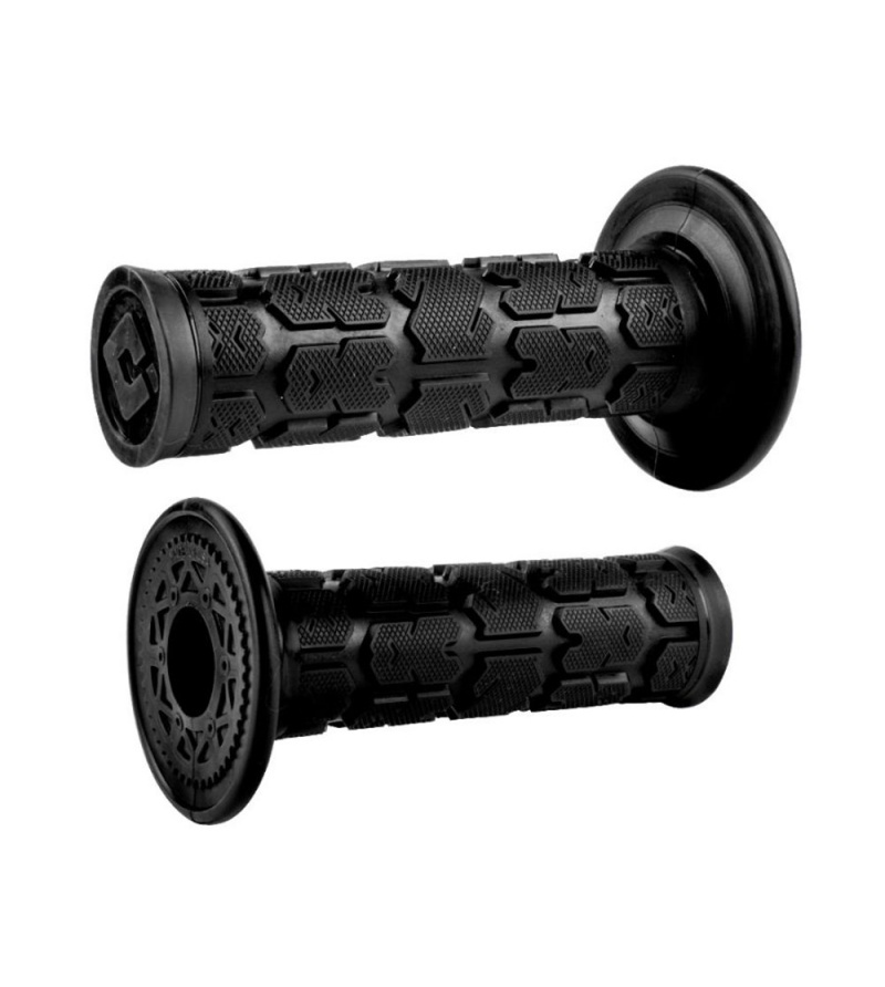 Η σειρά χειρολαβών Rogue V-2 Lock-On της ODI για μηχανές Motocross και Enduro, είναι για όποιον θέλει μεγαλύτερη απορρόφηση κραδασμών και μεγαλύτερη επιφάνεια για καλύτερο πιάσιμο! Τα εξαιρετικά μεγάλα υπερυψωμένα τακάκια παρέχουν εξαιρετική απορρόφηση κραδασμών. Λαβή με διάμετρο 32.0mm για καλύτερο πιάσιμο. Ανθεκτικό σχέδιο επιφάνειας για βελτιωμένη πρόσφυση. Βαθιές αυλακώσεις για την απομάκρυνση λάσπης. Σχεδιασμένο για να ταιριάζει σε τιμόνια 7/8″. Λαβή μήκους 110mm – Συνολικό μήκος 125mm με τον σφιγκτήρα. Εύκολη τοποθέτηση – αφαίρεση. Δεν χρειάζεται κόλλα ή καλώδιο ασφαλείας Στην άκρη είναι ενισχυμένα από αλουμίνιο για πρόσθετη ανθεκτικότητα στην πτώση και στην αποφυγή σπασίματος της γκαζιέρας. Το κιτ εμπεριέχει τους αντάπτορες γκαζιέρας snap-on (Cam) για τα πιο δημοφιλή 2-Stroke & 4-Stroke μοντέλα ΜΧ. Οι αντάπτορες που εμπεριέχονται στο σετ V2 Lock-On Half-Waffle είναι οι: B, C, D, J, K & M. Διαβάστε εδώ τον “Οδηγό Εφαρμογής” και βεβαιωθείτε ότι περιλαμβάνεται ο αντάπτορες γκαζιέρας snap-on (Cam) για το μοντελο σας. ** Ενδέχεται το μοντέλο σας να χρειάζεται αντάπτορα που δεν εμπεριέχετε στην συσκευασία και χρεώνεται ξεχωριστά.