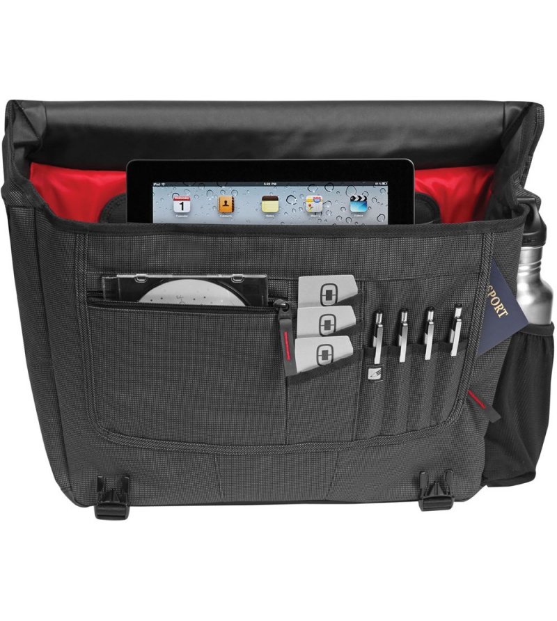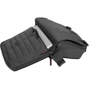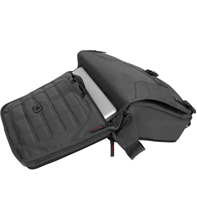 Ogio Renegade Messenger Η Ogio Renegade Messenger Slim είναι μια υψηλής ποιότητας τσάντα ώμου , η οποία είναι τέλεια για να μεταφέρετε το laptop και το tablet σας. Η κύρια θήκη της είναι επενδυμένη με βελούδο καπιτονέ fleece και μπορεί να φιλοξενήσει laptop έως 13’’ και tablet έως 11’’. Χαρακτηριστικά: Η μπροστινή θήκη έχει σχεδιαστεί για να ταιριάζει με ένα ευρύ φάσμα netbook ή tablet με οθόνη έως 11″ Οπίσθια θήκη για Laptop έως 13″ Το επενδυμένο, βελούδινο καπιτονέ διαχωριστικό πάνελ χωρίζει το tablet και το laptop Η μπροστινή τσέπη οργάνωσης φιλοξενεί το smart phone, power bank, στυλό και έχει ένα πλήκτρο γρήγορης απόσπασης για κλειδιά Η τσέπη με φερμουάρ στο πίσω πάνελ είναι ιδανική για μικρά ταξιδιωτικά έγγραφα Το λουρί μπορεί επίσης να αφαιρεθεί για να επιτραπεί η χρήση του περιβλήματος στο εσωτερικό μιας μεγαλύτερης τσάντας Υψηλής ποιότητας υλικά περιλαμβάνουν το ανθεκτικό μαύρο pindot dobby ύφασμα με αδιάβροχη επίστρωση, hypalon, νάιλον ιμάντες και εξατομικευμένα υλικά. Εσωτερικές τσέπες για ηλεκτρονικά με διαστάσεις: 38.1 cm x 26.7 cm x 3.17 cm Διαστάσεις: 30cm Υ x 42cm Π x 9cm Β Βάρος: 0.68 Kg. Χωρητικότητα: 0.29 m3 Τσέπη laptop: 36.83 cm Υ x 25.4 cm Π x 2.54 cm Β